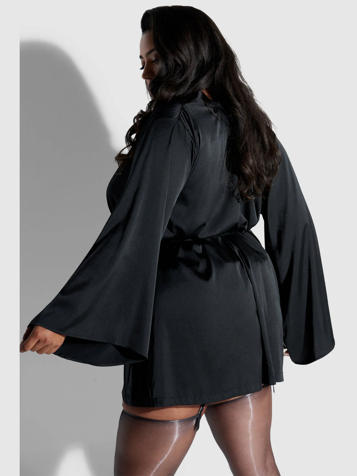 Make the everyday elegant with this short satin robe. Silky satin and full sleeves add a hint of drama.